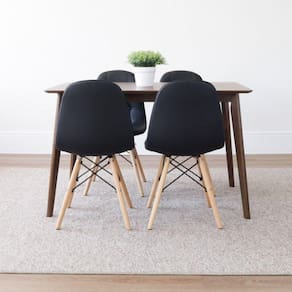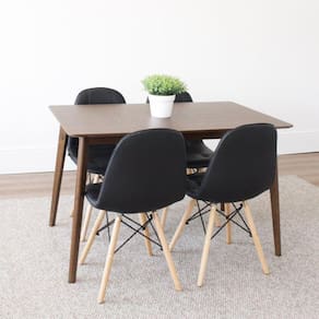 A Mesa Finlândia em madeira é ideal para quem busca elegância e praticidade, seu design rústico garante o detalhe que falta na decoração da sua casa. O conjunto com 4 cadeiras Eiffel Botonê completa o kit e garante o custo benefício para transformar o estilo divertido da sua casa com muita praticidade e toques de design. Conjunto composto por: uma Mesa com tampo em MDF de 19 mm, base em madeira seringueira + 4 cadeiras com assento revestido em PU, Base em madeira faia com armação em aço pintado. Possui Rodízio: Não Altura do Conjunto: 82 cm Ambiente: null Ambiente Principal: Sala de Jantar Cor: Preto/Nogueira Informação Complementar: 1x Mesa de Jantar Retangular Tampo MDF Finlândia NogueiraLargura: 120 cmAltura: 75 cmPeso: 19 kgProfundidade: 75 cmNecessita Montagem: Sim1x Conjunto 4 Cadeiras Botonê Eiffel PretoLargura: 45 cmAltura: 82 cmPeso: 4,1 kgProfundidade: 50 cmNecessita Montagem: Sim Tamanho:
