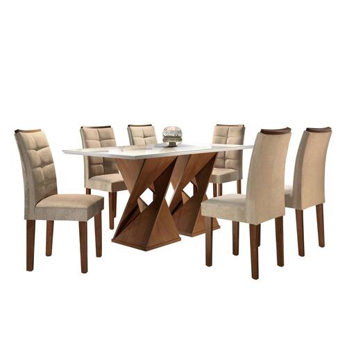 Quer oferecer confraternizações mais prazerosas e aconchegantes aos seus convidados? Ou jantares especiais para a sua família todos os dias? Seja qual for o caso, o Conjunto de Mesa de Jantar Genova com Cadeiras Napoles é a opção mais acertada. Perfeito para acomodar até 6 pessoas, ela é estruturada com tampo moderno e resistente. Cadeiras aconchegantes, que formam o móvel perfeito para qualquer ocasião. Conquistar uma sala de jantar refinada e de bom gosto nunca foi tão fácil. Especificações Técnicas: Espessura do Tampo; 25 mm Peso da Cadeira/Banco; 9 kg Peso da Mesa; 63 kg Medida da Base; 76,5cmx102cmx45cm Medida da Cadeira/Banco; 97,5cmx44cmx58cm Medida da Mesa; 79cmx170cmx90cm Altura; 79 cm Largura; 170 cm Profundidade; 90 cm Acabamento da Mesa; Pintura UV Escala de Brilho; Brilhante Material Principal das Cadeiras/Bancos; MDF Material do Tampo; Vidro/MDF Acabamento da Cadeira/Banco; Pintura UV Revestimento da Cadeira/Banco; Suede Material da Base da Mesa; MDF Material da Estrutura da Cadeira; MDF Almofada do Assento; Fixa Quantidade de Lugares; 06 Possui Apoio para Braços; Não Cadeira/Banco Suporta Até; 120 kg Cadeira/Banco Estofada; Sim Formato do Tampo; Retangular Estilo; Moderno Enchimento do Encosto; Espuma D-20 Enchimento do Assento; Espuma D-23 Possui Apoio para os Pés; Não Possui Suporte Giratório; Não De Canto (Canto Alemão); Não Necessita Montagem; Sim Complexidade da Montagem; Alta: deve ser montado por um montador especializado Sistema de Montagem; Parafusos e Minifix Recomendações de Uso, Manutenção e Limpeza; Limpeza com pano macio e levemente umedecido. Não ultilizar solventes a base e de inflamáveis. Não utilizar produtos abrasivos. Ambiente; Sala de Jantar Ean: 7908003620610