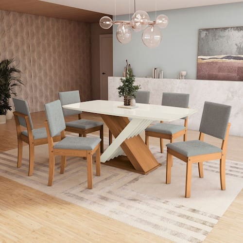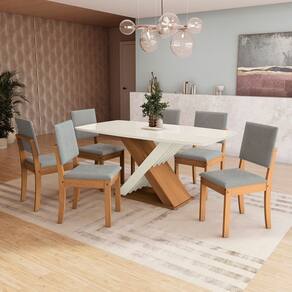 Conjunto Mesa Graviola com 6 Cadeiras Canela/Cinza
