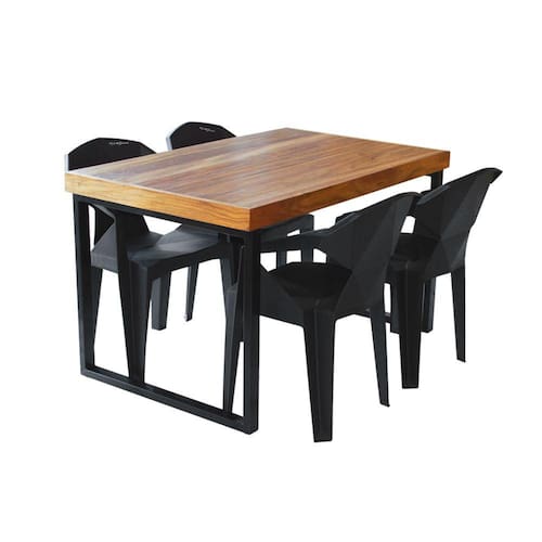 Conjunto Mesa Industrial Bernardo 1,50 Ferragem Preta com 4 Cadeiras New Alegra Preta - Preto