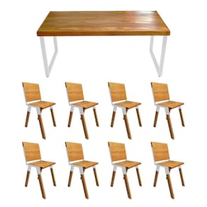 Conjunto Mesa Industrial Bernardo Madeira Maciça 2,20mx90cm C/ Ferragem Branca E 8 Cadeiras Detroit