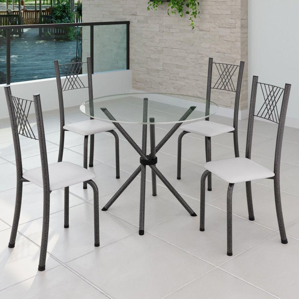 conjunto mesa jantar 4 cadeiras tampo vidro branco