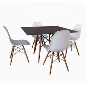 Conjunto de Mesa de Jantar Eames Eiffel Quadrada 90cm com 4 Cadeiras Design Moderno e Sofisticado
