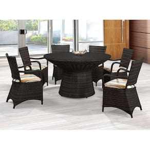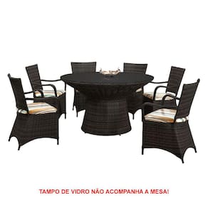 O Conjunto Maracaipe, é produzido com materiais de excelente qualidade, possui design moderno e sofisticado que combina perfeitamente nos mais diversos ambientes, proporcionando beleza para sua Área de lazer, Área de Churrasco, Apartamento, Balcão, Cozinha, Edícula, Espaço Gourmet, Sacada, Sala, Varanda ou onde desejar decorar.Tipo: Conjunto Mesa e CadeiraModelo: Maracaipe Cor Mesa: CaféCor Cadeira: CaféEstrutura em Aço carbono e pintura Eletrostática EpóxiAcabamento em Fibra Sintética com tratamento ANTI-UVEncosto com revestimento em fibra sintéticaAssento com revestimento em espuma e tecido impermeávelTampo de Vidro não acompanha a mesaMedidas Mesa:Altura: 83cmDiâmetro: 140cm Medidas Cadeira:Altura: 96cmLargura: 44cmComprimento: 44,5cmATENÇÃOIMAGENS MERAMENTE ILUSTRATIVAS REALIZADO EDIÇÃO, PODENDO HAVER UMA PEQUENA VARIAÇÃO DE COR DEPENDENDO DE CADA TELA OU MONITOR. Marca: AJA FIBRAS