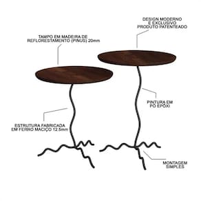 Pensando na beleza, resistência e durabilidade do produto, a Mesa Lateral Onda é composta por tampo em PINUS REFLORESTADO de 20mm, com bordo em ângulo e pintura UV, base em ferro maciço de 12mm com pintura eletrostática.