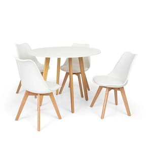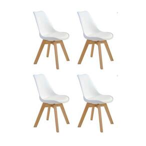 Conjunto Mesa Leda Branca 90 Cm + 4 Cadeiras Leda Brancas Mesa de Jantar Redonda 90cm Cor: Branca Diâmetro: 80cm Altura: 75cm Tampo em MDF 4 Cadeiras Leda Charles Eames, Saarinen Wood com almofada Branca Assento em Polipropileno com almofada em PUBase em madeira com acabamento arredondado. Largura 49cm Profundidade 43cm Altura até o assento 45cm Altura até o encosto 82cmOBS: Montagem não inclusa. Acompanha manual de instruções e chave para a montagem.