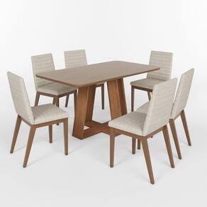 - Sapatas deslizantes. Medida da Mesa (A x L x P): 80 x 160 x 90cm Peso da Mesa: 58 kg Mesa suporta até: 40 kg Acabamento da Cadeira/Banco: Pintura UV Acabamento da Mesa: Pintura UV Almofada do assento: Fixa Ambiente Principal: Sala de Jantar Cadeira/Banco Estofada: Encosto e Assento Estofados Cadeira/Banco estofada: Encosto e Assento Estofados Cadeira/Banco Suporta Até: 120.0000 Cadeira/Banco suporta até: 120 kg codigo_ean: 7900288295156 Complexidade da Montagem: Alta: deve ser montado por um montador especializado Cor: Marrom/Off White Cor do Produto: Marrom/Off White Cor Secundária: Bege De Canto (Canto Alemão): Não Enchimento do Assento: Espuma D-23 Escala de Brilho: Fosco Espessura do Tampo: 25 mm Estrutura do Assento: MDF/MDP Formato do Tampo: Retangular Itens Inclusos: 1 Mesa, 6 Cadeiras, Kit Ferragens e Manual de Montagem Linha ou Coleção: Lins/Elena Manual de Montagem e Instalação: https://product-hub-prd.madeiramadeira.com.br/695887267/documents/cc5b2dde-7e69-46e4-8146-cbeb08d247da33291103266176349462731.pdf Marca: Henn Material da Base da Mesa: MDP Material da Estrutura da Cadeira: MDF/MDP Material do Tampo: Vidro/MDF Material Principal: MDF/MDP Medida da Cadeira/Banco (A x L x P): 91 x 46 x 55cm Medida do Tampo (L x C x E): 160 x 90 x 2,5cm Mesa Extensível: Sim Necessita Montagem: Sim Origem do Produto: Nacional Peso da Cadeira/Banco: 6 kg Possui Apoio Para os Pés: Não Quantidade de Cadeiras: 6 Quantidade de Lugares: 06 Recomendações de Uso, Manutenção e Limpeza: Para limpeza de seu móvel, use uma flanela seca ou umedecida. Não utilize produtos químicos que possam danificar o produto. Revestimento da Cadeira/Banco: Linho Sistema de Montagem: Parafusos e Cavilhas