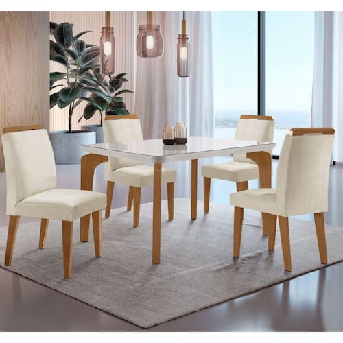 Conjunto Sala de Jantar Mesa Liz 120cm com Vidro Canto Copo e 4 Cadeiras Athenas Moderna