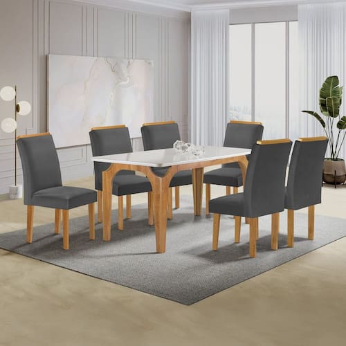 O Conjunto Mesa Melina 170cm x 90cm com 6 Cadeiras Luisa é a escolha ideal para quem busca sofisticação e conforto na sala de jantar. O tampo Smart Plus com vidro Off White traz um toque moderno e facilita a limpeza, garantindo praticidade para o dia a dia. As Cadeiras Luisa combinam design elegante e ergonomia, proporcionando máximo conforto durante suas refeições. A estrutura robusta garante estabilidade e resistência, tornando esse conjunto perfeito para momentos especiais com a família e amigos. Ideal para ambientes sofisticados.