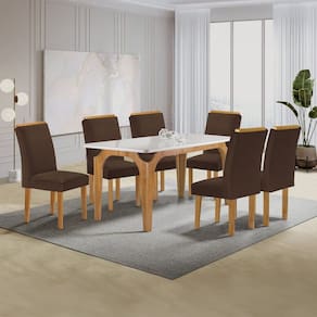 O Conjunto Mesa Melina 170cm x 90cm com 6 Cadeiras Luisa é a escolha ideal para quem busca sofisticação e conforto na sala de jantar. O tampo Smart Plus com vidro Off White traz um toque moderno e facilita a limpeza, garantindo praticidade para o dia a dia. As Cadeiras Luisa combinam design elegante e ergonomia, proporcionando máximo conforto durante suas refeições. A estrutura robusta garante estabilidade e resistência, tornando esse conjunto perfeito para momentos especiais com a família e amigos. Ideal para ambientes sofisticados.