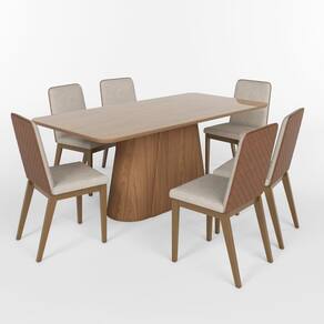 Esse conjunto é composto pela Mesa Olívia e cadeiras Pietra.
