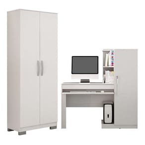 Otimize seu espaço de trabalho com nossa mesa para Otimize seu espa?o de trabalho com nossa mesa para computador e multiuso integrado. Com um design moderno e vers?til, esta combina??o oferece n?o apenas um local confort?vel para seu computador, mas tamb?m espa?o adicional para armazenamento e organiza??o. Transforme seu ambiente de trabalho em um espa?o eficiente e funcional, onde cada detalhe ? pensado para aumentar sua produtividade e conforto. Acabamento: Pintura UV Altura do Conjunto: 188 cm Ambiente: Escrit?rio Ambiente Principal: Escrit?rio Cor: Branca Fosco Informa??o Complementar: 1x Mesa para Computador Escrivaninha com Arm?rio Branca Fosco Largura: 130 cm Altura: 136 cm Peso: 41,6 kg Profundidade: 44 cm Necessita Montagem: Sim