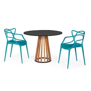 Conjunto Mesa De Jantar Redonda Preta 100cm Talia Amadeirada Com 2 Cadeiras Allegra - Turquesa