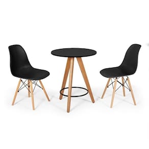 Conjunto Mesa Redonda Decorativa para Salas Aline 70cm Preta com 2 Cadeiras Eames Eiffel