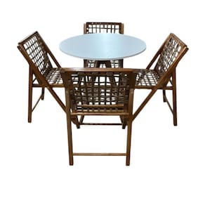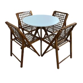 Conjunto Mesa Redonda com 4 Cadeiras em Madeira e Corda Náutica Castanho/Branco -