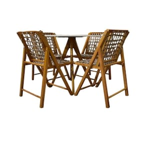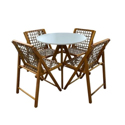 Conjunto Mesa Redonda com 4 Cadeiras em Madeira e CordaNáutica MelBranco -