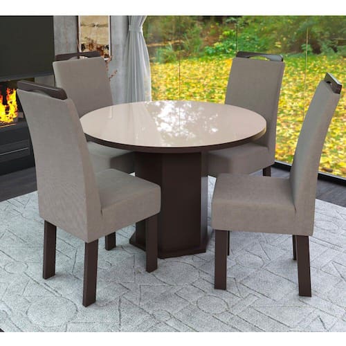 Conjunto Mesa Redonda com 4 Cadeiras New Ametista Talismã - Bege Médio