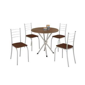 O conjunto Minas, com 04 cadeiras, tem sua estrutura em aço carbono, pintura epóxi, tampo em MDF-BP, garante maior resistência e qualidade, sem perder a sofisticação do produto. Você poderá utilizar este produto em vários ambientes, como: cozinha, áreas de lazer entre outros, uma infinidade de combinações, é garantia de satisfação! Acabamento da Cadeira/Banco: Pintura Epóxi Acabamento da Mesa: Pintura Poliéster Almofada do assento: Fixa Ambiente Principal: Cozinha Cadeira/Banco estofada: Não Cadeira/Banco suporta até: 100 kg Complexidade da Montagem: Baixa: pode ser montado por uma pessoa sozinha Cor: Branco/Marrom/Imbuia Cor do Produto: Branco/Marrom/Imbuia Cor Predominante: Branco Escala de Brilho: Brilhante Espessura do Tampo: 15 mm Estrutura do Assento: Compensado 9mm, Espuma D-16, Courino Itens Inclusos: 1 Conjunto, Kit Ferragens e Manual de Montagem Linha ou Coleção: Minas Manual de Montagem e Instalação: https://cdn2.madeiramadeira.com.br/atributo/moveis-teixeira/787710-esquema-montagem-conj-minas.pdf Material da Base da Mesa: Aço Material da Estrutura da Cadeira: Aço Medida da Base (A x L x P): 74cmx62cmx62cm Medida da Cadeira/Banco (A x L x P): 85cmx37,5cmx41,5cm Medida da Mesa (A x L x P): 75,5cmx68cmx68cm Medida do Tampo (L x C x E): 68cmx68cmx1,5cm Mesa suporta até: 12 kg Necessita Montagem: Sim Origem do Produto: Nacional Peso da Cadeira/Banco: 2,46 kg Peso da Mesa: 6,203 kg Possui Apoio para Braços: Não Possui Apoio Para os Pés: Não Recomendações de Uso, Manutenção e Limpeza: Limpeza com pano macio e basicamente seco, não utilizar material aspero. Não ultilizar solventes a base de inflamáveis. Sistema de Montagem: Parafusos Tamanho: