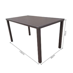 AS IMAGENS SÃO MERAMENTE ILUSTRATIVAS E PODEM SOFRER VARIAÇÕES DE COR E PEQUENOS DETALHES DE ACORDO COM O SEU MONITOR, ILUMINAÇÃO DO AMBIENTE E ATÉ MESMO A SUA PERCEPÇÃO VISUAL.Conjunto Mesa Retangular 1.20x0.80 Com 4 Cadeiras Roma Em AlumÃnio Ãrea Externa Marrom