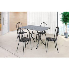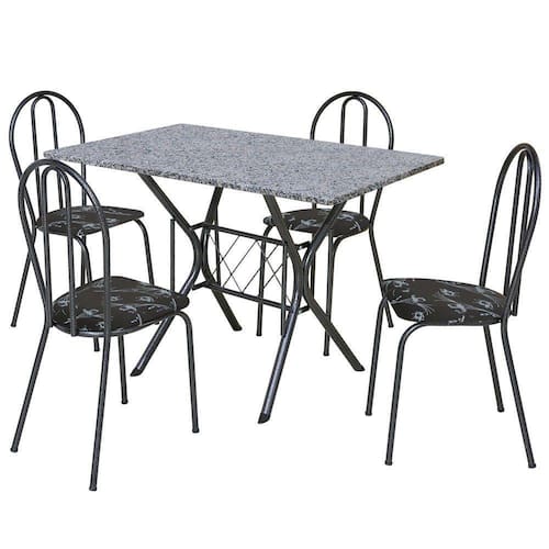 Pronto para deixar sua decoração ainda mais bonita, o Conjunto de Mesa com 4 Cadeiras Valentina - Preto da Artefamol foi desenvolvida para preencher seus espaços seja na cozinha ou na sala de estar. Com design composto por linhas retas e curvas, oferecendo um toque de requinte, ele encaixa-se em qualquer ambiente. Graças a pintura eletrostática a pó, as peças possuem alta durabilidade, resistência UV e uniformidade no revestimento. Já o tratamento químico antiferrugem, garantem resistência a umidade, eliminando a possibilidade de danos ao metal. As cadeiras do conjunto ainda contam com o assento de courvin. Esse material tem algumas características do couro, como a impermeabilidade e a não aderência aos cheiros do ambiente. Facilitando a limpeza, o que aumenta as possibilidades de conservação. Além disso, as soldas das peças são feitas utilizando a tecnologia da indústria automobilística. Isso quer dizer que as possíveis fragilidades de um conjunto de cadeiras comum, não são vistas no Conjunto Valentina da Artefamol. Assegurando alto custo-benefício.