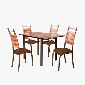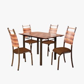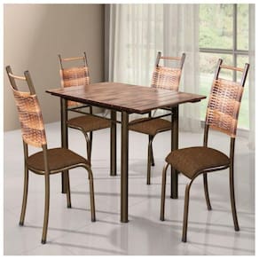 Conjunto Mesa Retangular Conhaque com 4 Cadeiras BM Tubulares Quer deixar sua casa completa? Então você precisa de móveis indispensáveis. Você vai deixar seu lar muito mais aconchegante, receptivo e sempre disponível para receber a visita de amigos, familiares e convidados. Especificações - Medida da Mesa: 75 (A) x 75 (L) x 120 (C) cm; - Medida da Cadeira: 105 (A) x 34 (L) x 40 (P) cm; - Material do Tampo: Pinus; - Cor Tampo: Conhaque; - Espessura do Tampo: 20 mm; - Formato: Retangular; - Material da Base: Aço - Tubos de 2,5 polegadas; - Peso Suportado Mesa: 20 kg; - Material da Estrutura da Cadeira: Aço; - Peso Suportado Cadeira: 110 kg; - Ratan e Tecido Corino Marrom; - Cor Estrutura Mesa e Cadeira: Ouro Velho; - Acabamento: Pintura Epóxi; - Quantidade de Lugares: 04; - Itens Inclusos: 1 Mesa e 4 Cadeiras; - Necessita Montagem: Sim; - Complexidade da Montagem: Baixa: pode ser montado por uma pessoa sozinha; - Recomendações de Uso, Manutenção e Limpeza: Limpeza com pano macio e levemente umedecido. Observações - Item composto Apenas Conjunto Mesa Retangular Conhaque com 4 Cadeiras BM Tubulares. Demais itens NÃO acompanham o produto. Entrega do Produto - Não nos responsabilizamos pelo transporte por escadas/elevadores, guincho ou içamento deste produto. Qualquer despesa é de responsabilidade do cliente.