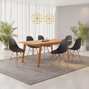 As mesas são indispensáveis para o bom funcionamento de uma casa e por isso a Mesa Elegance é ideal para cozinhas ou salas de jantar. Possui amplo espaço para que você possa dispor pratos, copos, talheres e objetos diversos. Com pés em madeira maciça o móvel é de fácil combinação sendo perfeito para a sua rotina ou reuniões de convidados. Conheça nossa linha de Cadeira Eames e se apaixone por esse modelo que vai mudar o ambiente da sua casa, deixando ainda mais moderno, bonito e sofisticado. A Cadeira é um item que faz toda a diferença em um ambiente e Charles Eames fez história na indústria mundial de móveis com modelos exclusivos de cadeiras nos anos 50 que continuam inspirando designs até hoje. Nossa Cadeira Eames com Base de Madeira Marroml Dsw foi inspirada nesses modelos de Charles Eames. São cadeiras, com curvas detalhadamente desenvolvidas para o seu conforto. Com altíssima qualidade, nossas Cadeiras Eames foram desenvolvidas com formato ergonômico para melhor adaptação e experiência de nossos consumidores. Altura do Conjunto: 82 cm Ambiente: null Ambiente Principal: Sala de Jantar codigo_ean: 7909903406335 Cor: Preto/Cinamomo Cor do Produto: Preto/Cinamomo Informação Complementar: 2x Cadeira Base em Madeira e Aço Eames Preto Largura: 46 cm Altura: 82 cm Peso: 3,4 kg Profundidade: 52 cm Necessita Montagem: Sim