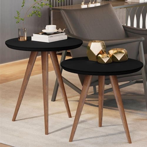 Conjunto Mesa Retrô Lateral E Apoio Sala De Estar Preto Fosco Nossas Mesas Laterais e de Apoio Redondas são fabricadas nos melhores padrões de qualidade do mercado moveleiro.