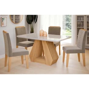 Sala de Jantar Completa Ágata Tampo Madeirado c/ Vidro 130x80cm e 4 Cadeiras Clarice Nature/Suede Joli Chocolate - Cimol Abaixo segue os produtos do KIT: Sala de Jantar Completa Ágata Tampo Madeirado c/ Vidro 130x80cm e 4 Cadeiras Clarice Nature/Suede Joli Chocolate - Cimol