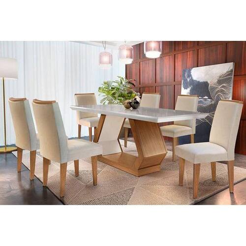 Sala de Jantar Completa Alvorada Tampo Madeirado c/ Vidro Canto Reto 180x90cm e 6 Cadeiras Lunara Capuccino/Suede Creme - Rufato Abaixo segue os produtos do KIT: Sala de Jantar Completa Alvorada Tampo Madeirado c/ Vidro Canto Reto 180x90cm e 6 Cadeiras Lunara Capuccino/Suede Creme - Rufato