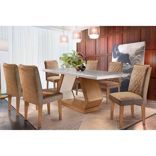Conjunto: Mesa Sala Jantar Alvorada Tampo Madeirado 180cm Canto Reto + 6 Cadeiras Jade Imbuia/Chocolate - Rufato Abaixo segue os produtos do KIT: Conjunto: Mesa Sala Jantar Alvorada Tampo Madeirado 180cm Canto Reto + 6 Cadeiras Jade Imbuia/Chocolate - Rufato