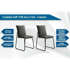 Cadeira Sala de Jantar Soft 1750 Aço Kit 2 Uni Preto/Linho Grafite - Carraro
