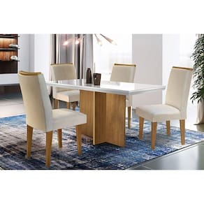 Sala de Jantar Completa Berlim Tampo Madeirado c/ Vidro Canto Reto 120x80cm Canto Reto e 4 Cadeiras Lunara Capuccino/Suede Creme - Rufato Abaixo segue os produtos do KIT: Sala de Jantar Completa Berlim Tampo Madeirado c/ Vidro Canto Reto 120x80cm Canto Reto e 4 Cadeiras Lunara Capuccino/Suede Creme - Rufato