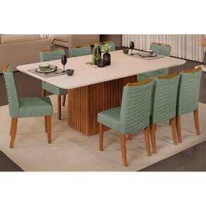 Sala de Jantar Completa Canes Tampo Madeirado c/ Vidro Curvo 200x100cm e 8 Cadeiras Julia Freijo/Off White - Linho Mate - DJ Móveis Abaixo segue os produtos do KIT: Sala de Jantar Completa Canes Tampo Madeirado c/ Vidro Curvo 200x100cm e 8 Cadeiras Julia Freijo/Off White - Linho Mate - DJ Móveis