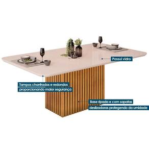 Mesa de Sala Jantar Canes c/ Tampo Madeirado c/ Vidro Curvo 200x100cm Freijó/Off White - DJ Móveis