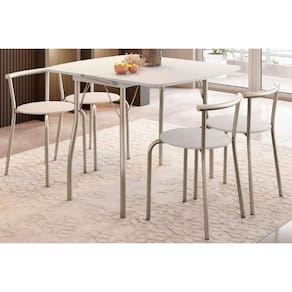 Conjunto: Mesa Sala Jantar Dobrável E 4 Banquetas 105 Prata/branco - Prata/branco - Carraro