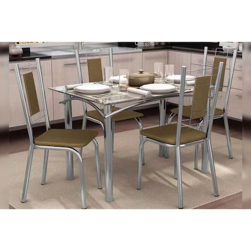 Sala de Jantar Completa Elba Aço c/ Tampo de Vidro 120x80cm e 4 Cadeiras Florença Cromada - Courano Capuccino - Kappesberg Abaixo segue os produtos do KIT: Sala de Jantar Completa Elba Aço c/ Tampo de Vidro 120x80cm e 4 Cadeiras Florença Cromada - Courano Capuccino - Kappesberg