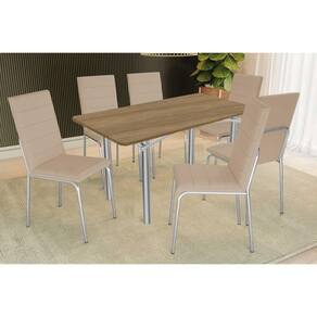 Sala de Jantar Completa Elba c/ Tampo de Madeira 160cm e 6 Cadeiras Amsterdã Cromada/Nogueira - Courano Bege - Kappesberg