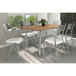 Sala de Jantar Completa Elba c/ Tampo de Madeira 160cm e 6 Cadeiras Nápoles Cromada/Nogueira - Courano Branco - Kappesberg Abaixo segue os produtos do KIT: Sala de Jantar Completa Elba c/ Tampo de Madeira 160cm e 6 Cadeiras Nápoles Cromada/Nogueira - Courano Branco - Kappesberg