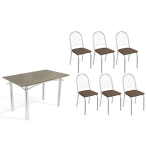 Sala de Jantar Completa Elba Tampo Madeirado c/ Vidro 120cm e 6 Cadeiras Noruega Cromada/Freijo Bronze - Courano Marrom - Kappesberg