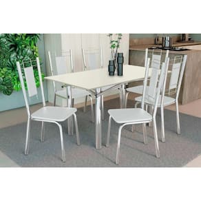 Sala de Jantar Completa Elba Tampo Madeirado c/ Vidro 160cm e 6 Cadeiras Florença Cromada/Off White - Courano Branco - Kappesberg Abaixo segue os produtos do KIT: Sala de Jantar Completa Elba Tampo Madeirado c/ Vidro 160cm e 6 Cadeiras Florença Cromada/Off White - Courano Branco - Kappesberg