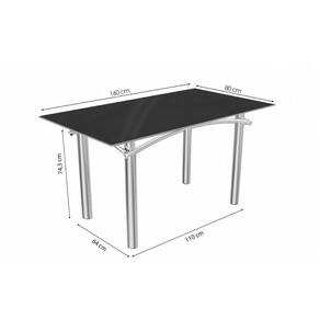 Tampo Mesa Sala de Jantar Madeirado c/ Vidro TA26 Retangular 90x160cm Preto/Preto - Kappesberg