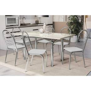 Sala de Jantar Completa Elba Tampo Madeirado c/ Vidro 160cm e 6 Cadeiras Holanda Cromada/Off White - Courano Branco - Kappesberg