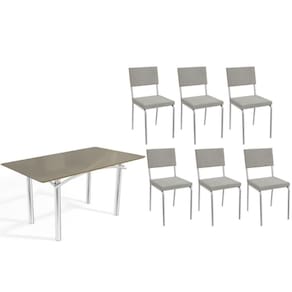Sala de Jantar Completa Elba Tampo Madeirado c/ Vidro 160cm e 6 Cadeiras Zaria Cromada/Freijo Bronze - Boucle Cinza - Kappesberg Abaixo segue os produtos do KIT: Sala de Jantar Completa Elba Tampo Madeirado c/ Vidro 160cm e 6 Cadeiras Zaria Cromada/Freijo Bronze - Boucle Cinza - Kappesberg