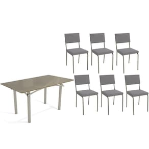 Abaixo segue os produtos do KIT: Sala de Jantar Completa Elba Tampo Madeirado c/ Vidro 160cm e 6 Cadeiras Zaria Niquel/Freijo Bronze - Suede Cinza - Kappesberg