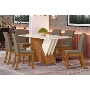Conjunto: Mesa Sala Jantar Epic Tampo Madeirado C/ Vidro 160x90cm E 6 Cadeiras Isa Nature/suede Light Bege - Henn