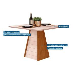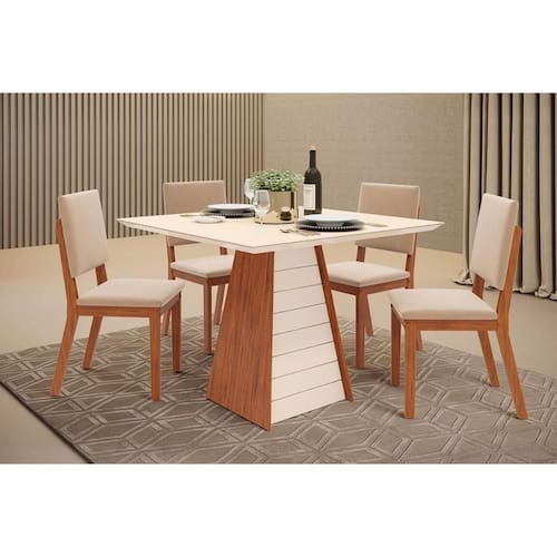 Sala de Jantar Completa Fler c/ Tampo Madeirado c/ Vidro 90x90cm e 4 Cadeiras Talia Freijo/Off White - Suede Creme - DJ Móveis
