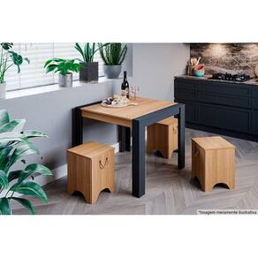 Sala de Jantar Completa Grace c/ Tampo Madeirado 90cm + 4 Bancos Kim Cinza/Nature - Cimol