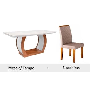 Conjunto: Mesa Sala Jantar Jade c/ Tampo Madeirado c/ Vidro Canto Reto 180cm + 6 Cadeiras Jade Imbuia/OW/Chocolate - Rufato - Blush