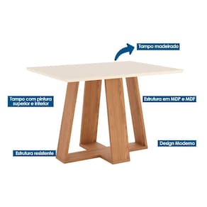 Mesa de Sala Jantar Lins SC91 c/ Tampo Madeirado Reto s/ Vidro 120x80cm Nature/Off White - Henn