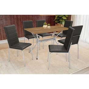 Conjunto: Mesa Sala Jantar Loire c/ Tampo de Madeira 160cm e 6 Cadeiras Amsterdã Cromada/Preto 110 - Kappesberg